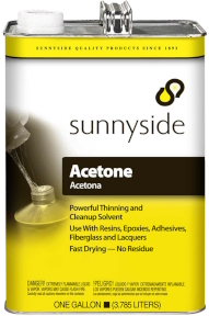 Acetone is a very fast evaporating, extremely flammable solvent. It can be used to dissolve many natural and synthectic gums, waxes, oils and dyes. It will redily mix with wter, alcohols, esters, ethere and orgther orgainc solvents. Acetone can be use for thinning epoxies, lacquers, and adhesives, as well as polyester resins used in fiberglass boat and auto repairs. When cleaning equipment or when using for any other purpose, prevent flammable vapor buildup by limiting amount used to a few ounces at a time. Do not use as a general purpose cleaner. Acetone may soften or damage plastics, synthetics and many other finishes. Use only where specified, and test an inconspicuous area before application. Gallon oblong metal pail with carrying handle.